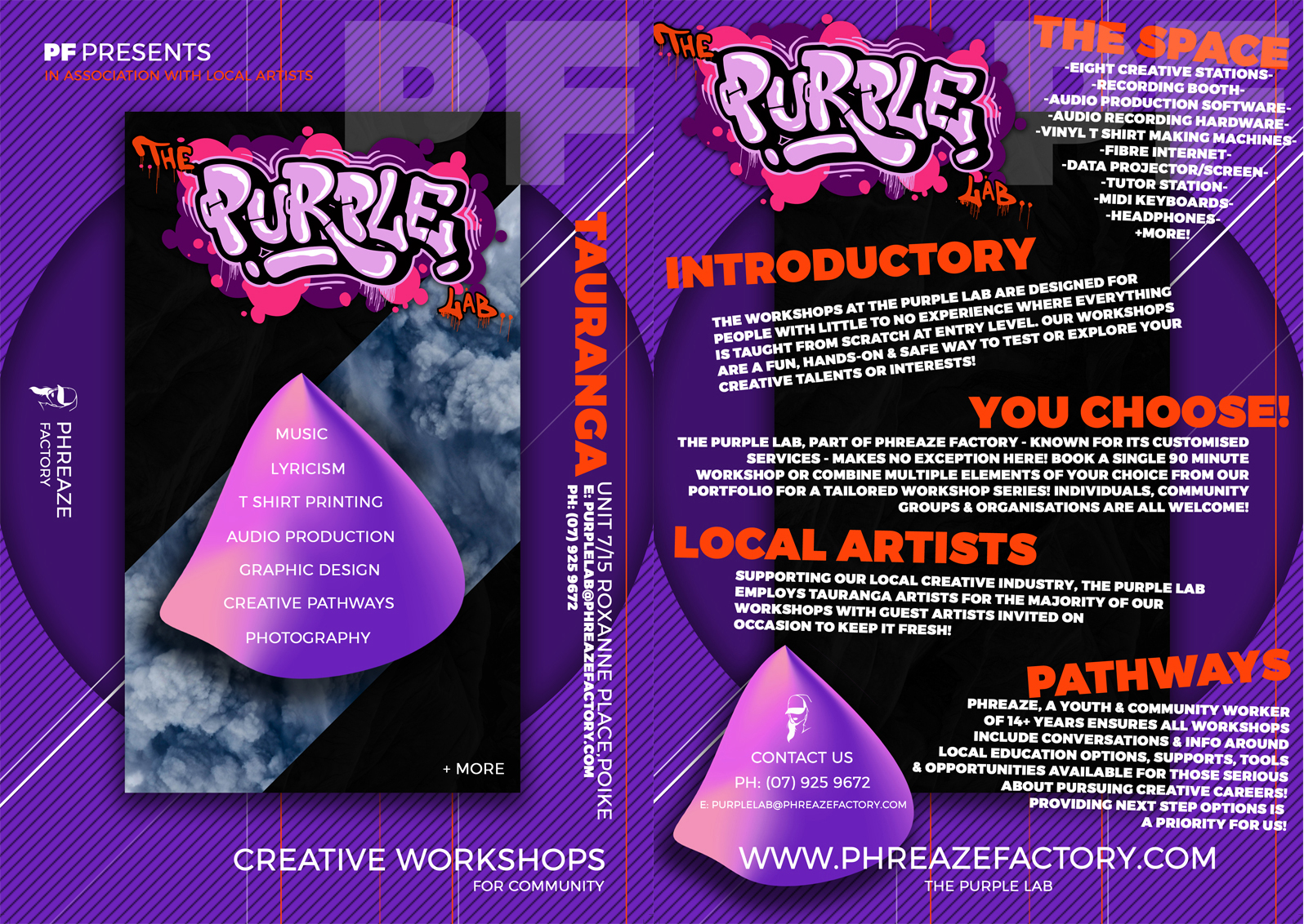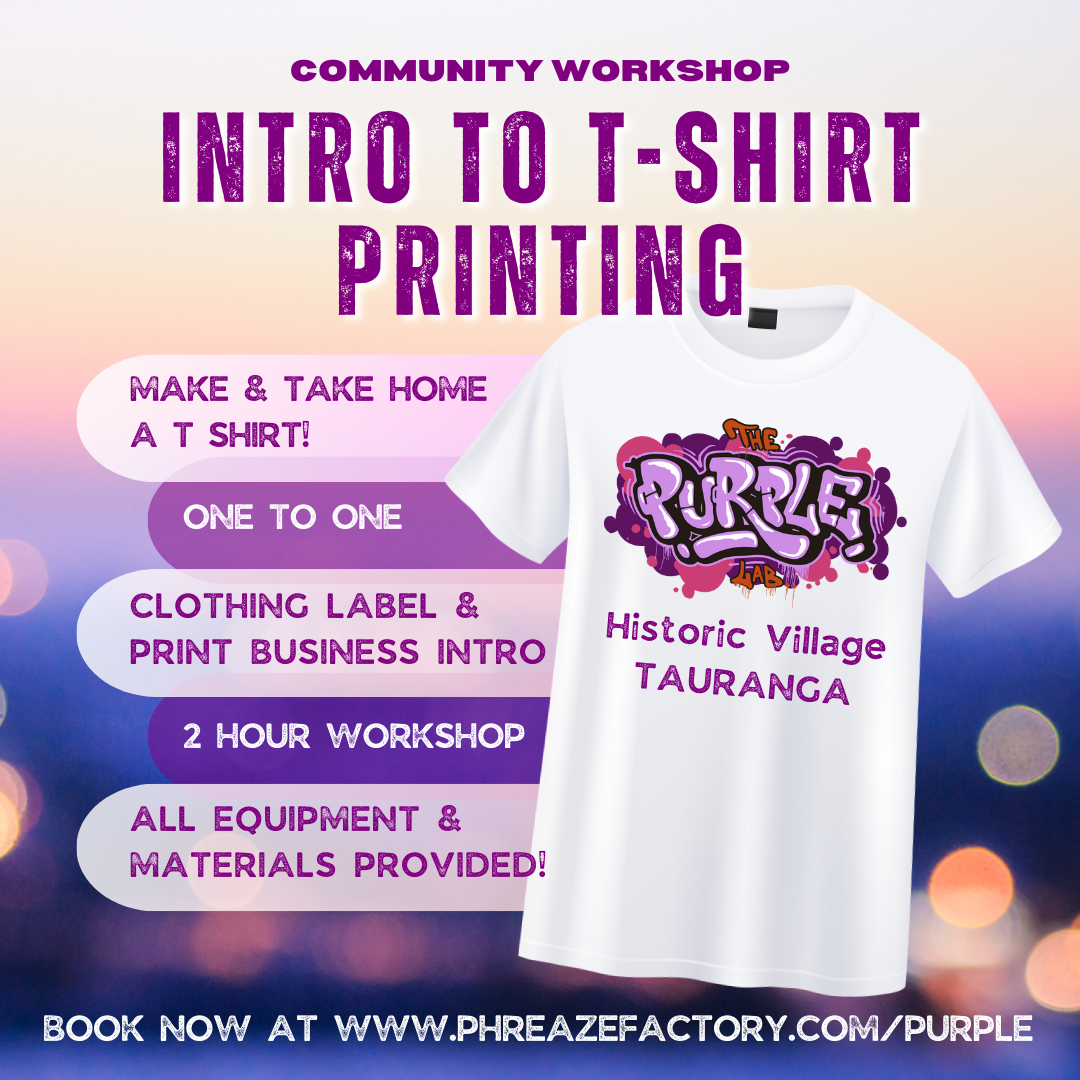 There are only 2 sets of workshops being offered and only 8 places in each set of workshops! One for Rangatahi and one for Adults - first in first served! All workshops will be held at THE PURPLE LAB - Phreaze Factory Unit 7/15 Roxanne Place, Poike, Tauranga. Get your registration in today - these will fill FAST