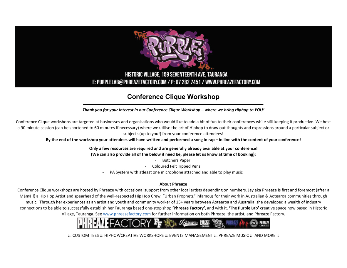- SPECIAL: Tauranga Hiphop Project Workshops
