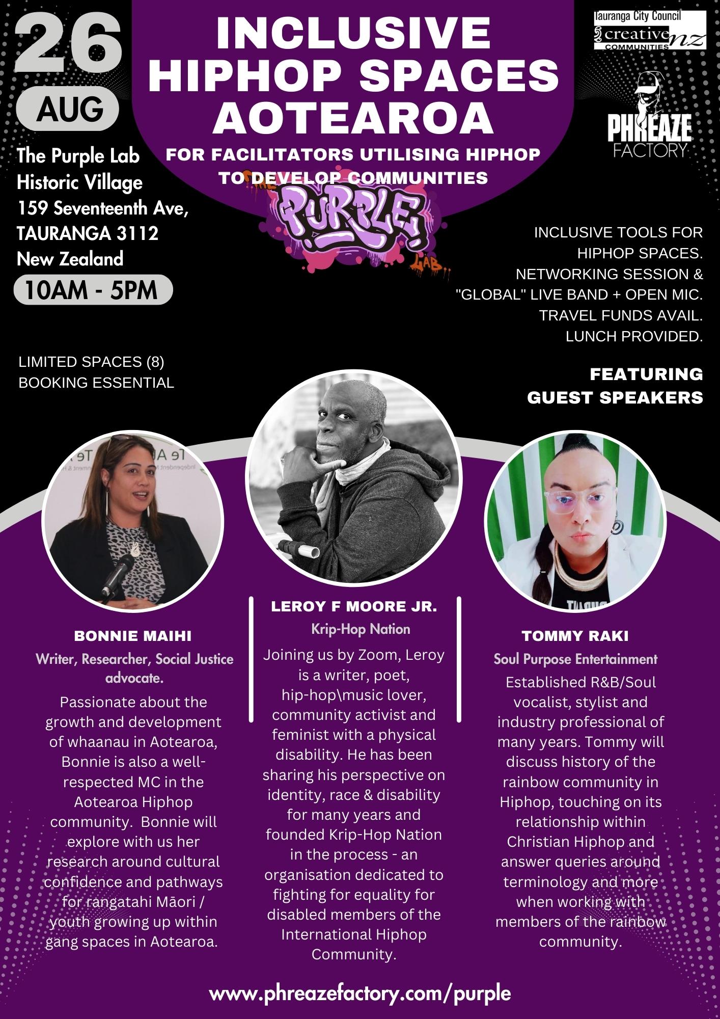 - NATIONAL HIPHOP INDUSTRY GUESTS from Hamilton, Christchurch, Wellington, Te Kauwhata, Auckland, Tauranga